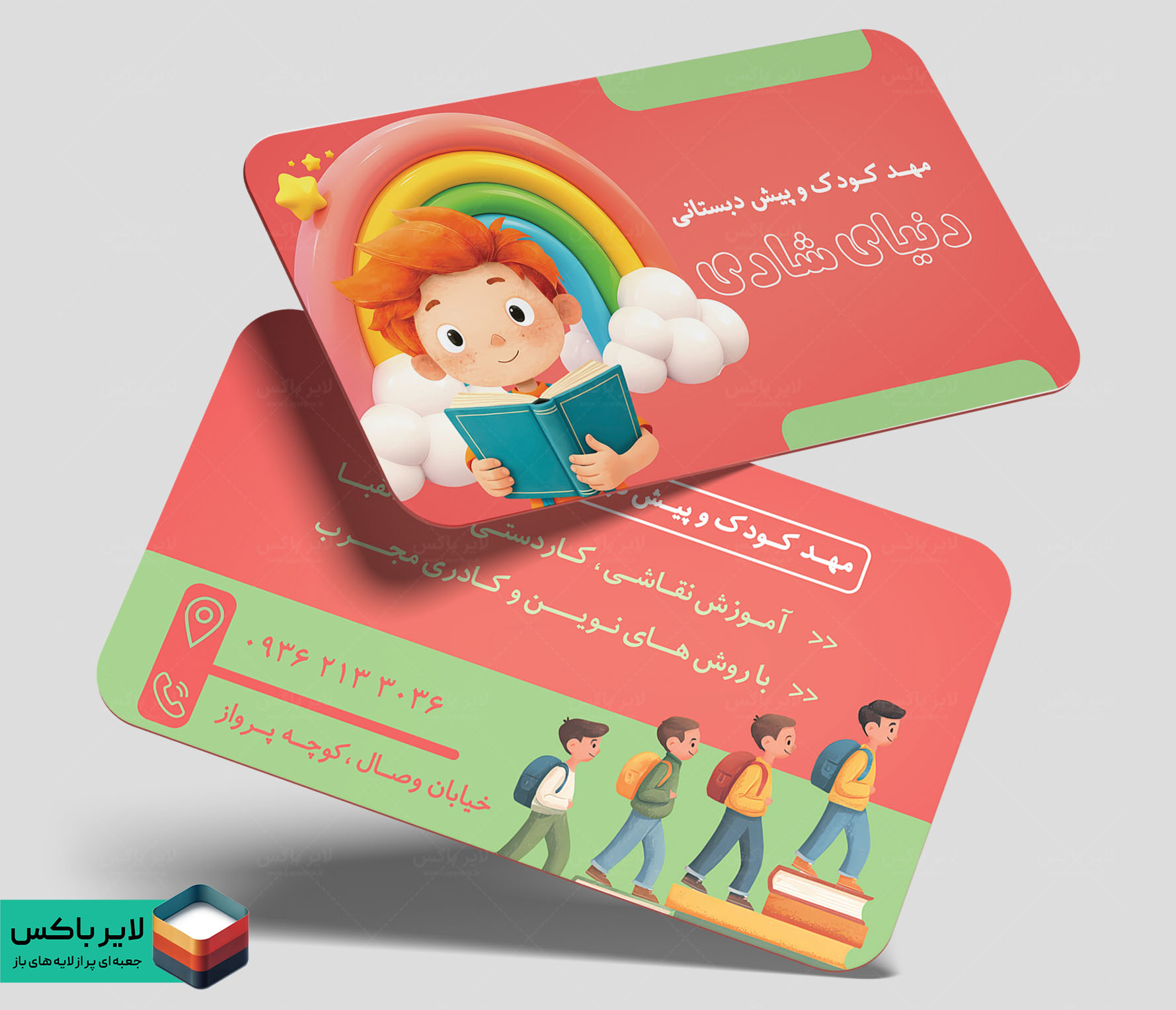 کارت ویزیت لایه باز مهد کودک | طرح شاد و حرفهای مخصوص چاپ