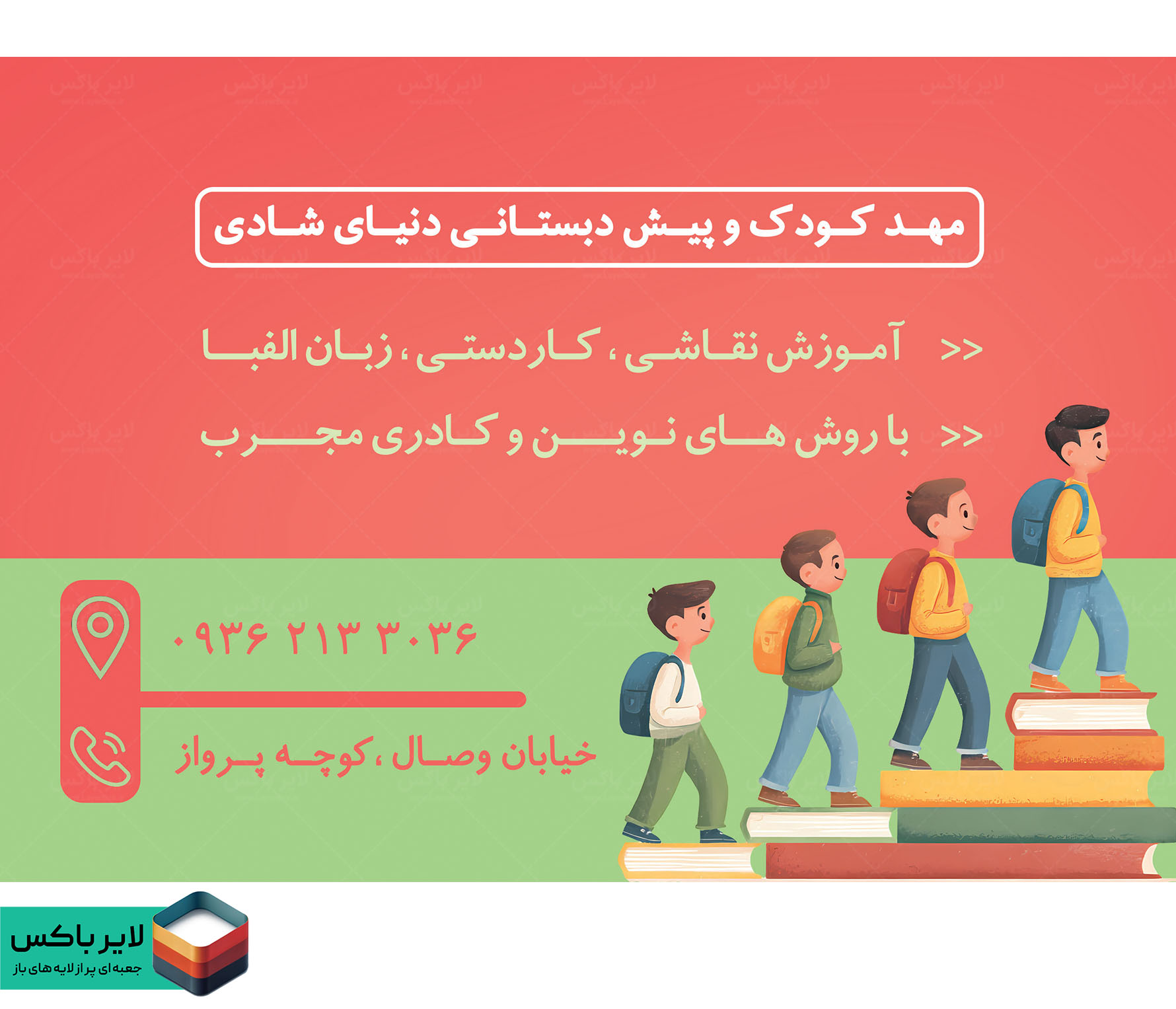 - طراحی شاد، رنگارنگ و هماهنگ با هویت مراکز آموزشی و مهدهای کودک