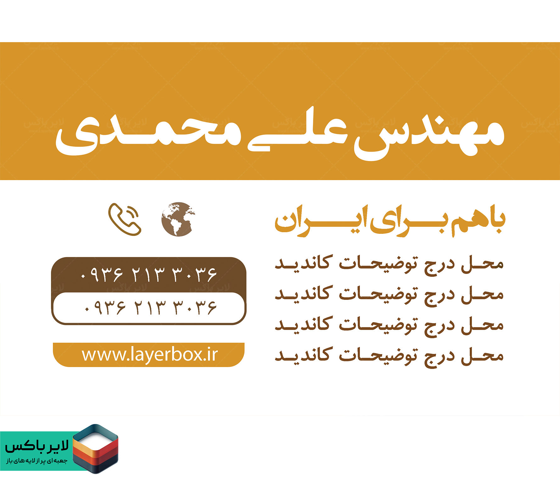 چیدمان استاندارد و خوانا برای درج نام، سمت، شعار انتخاباتی، اطلاعات تماس و تصویر