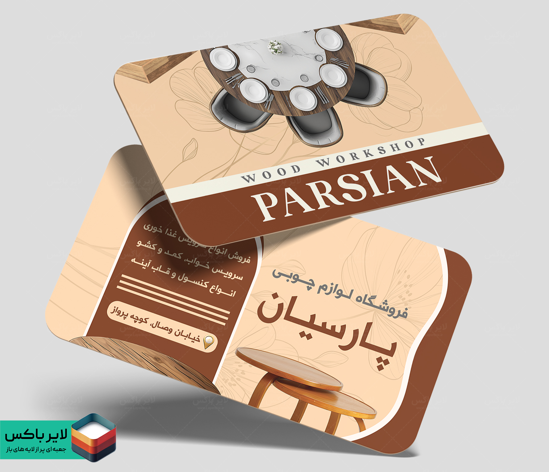 کارت ویزیت فروشگاه لوازم چوبی | طرح حرفهای و مناسب معرفی کسبوکار