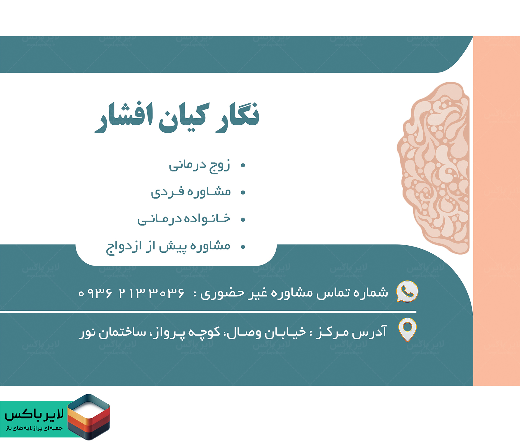 کارت ویزیت لایه باز روانشناس | طرح رسمی و حرفهای برای معرفی خدمات تخصصی