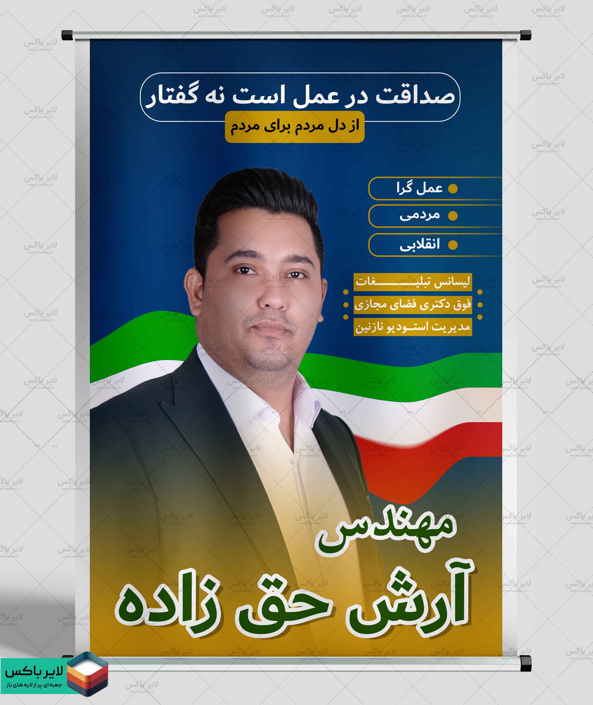 با این پوستر لایه باز انتخابات شورای شهر تنها کافی است عکس و متن دلخواه خود را جایگزین کنید تا در کوتاهترین زمان یک پوستر انتخاباتی حرفهای و آماده چاپ داشته باشید.