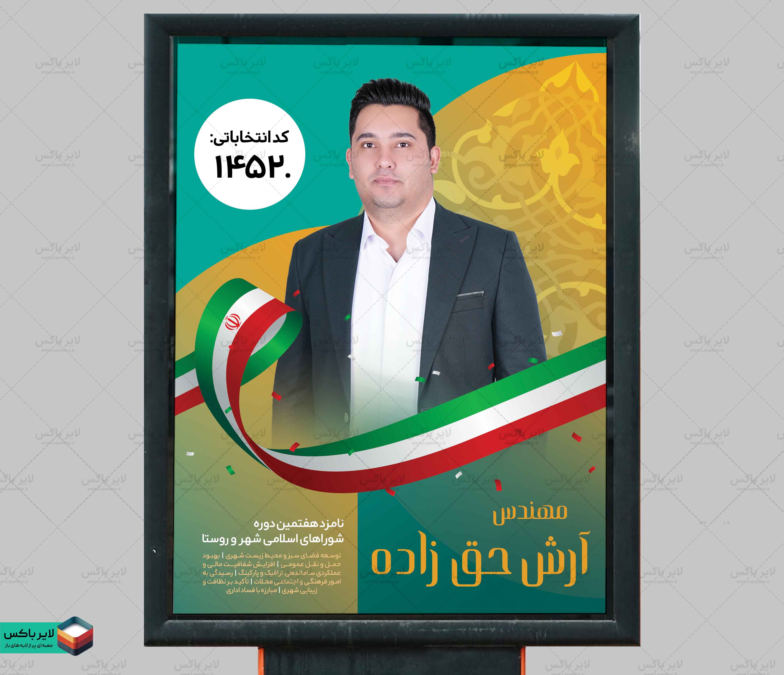 پوستر لایه باز انتخاباتی شورای شهر – قابل تبدیل به بنر ۳×۴ متر با کیفیت چاپ