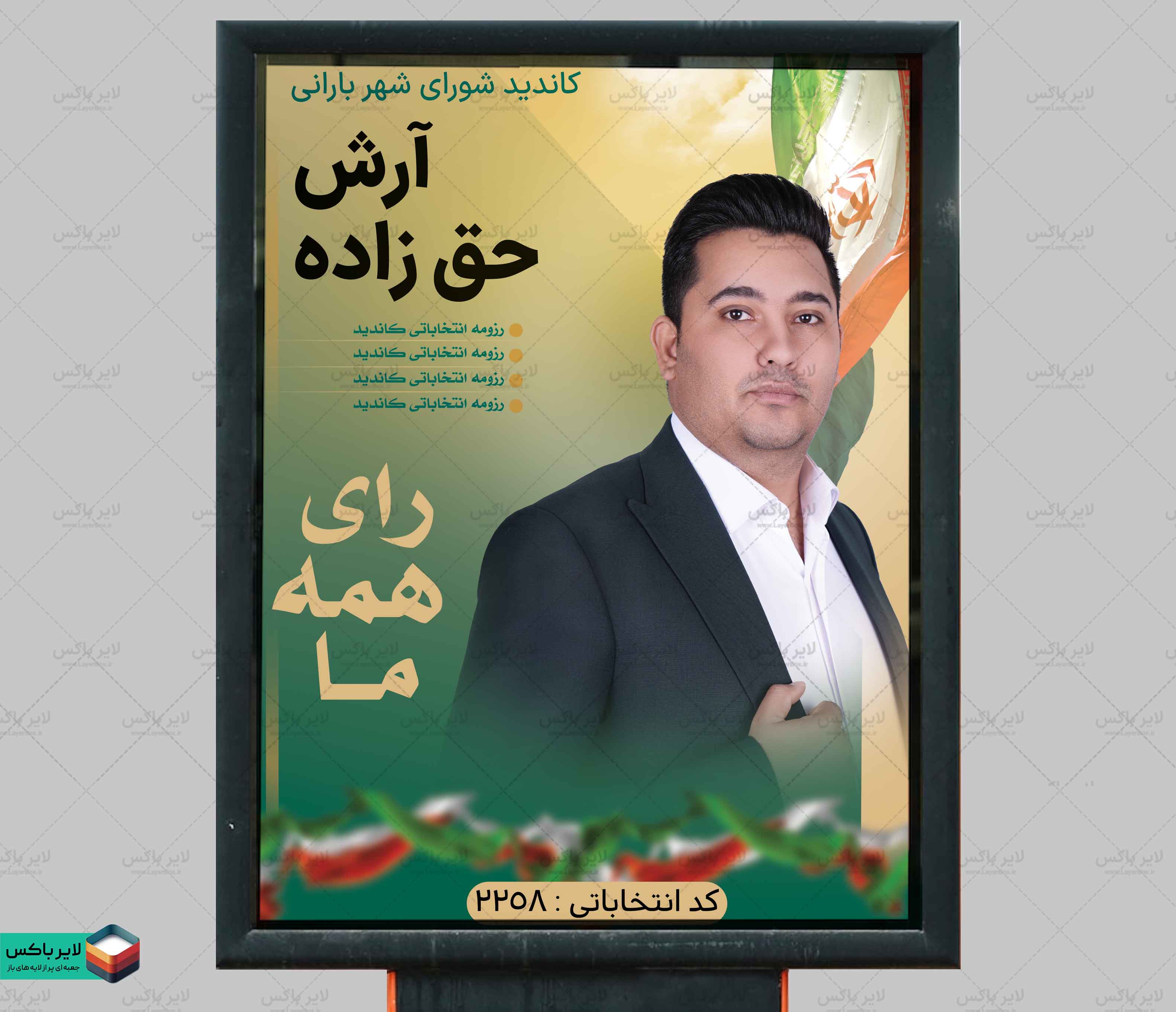 پوستر لایه باز انتخاباتی شورای شهر – قابل تبدیل به بنر ۳×۴ متر با کیفیت چاپ