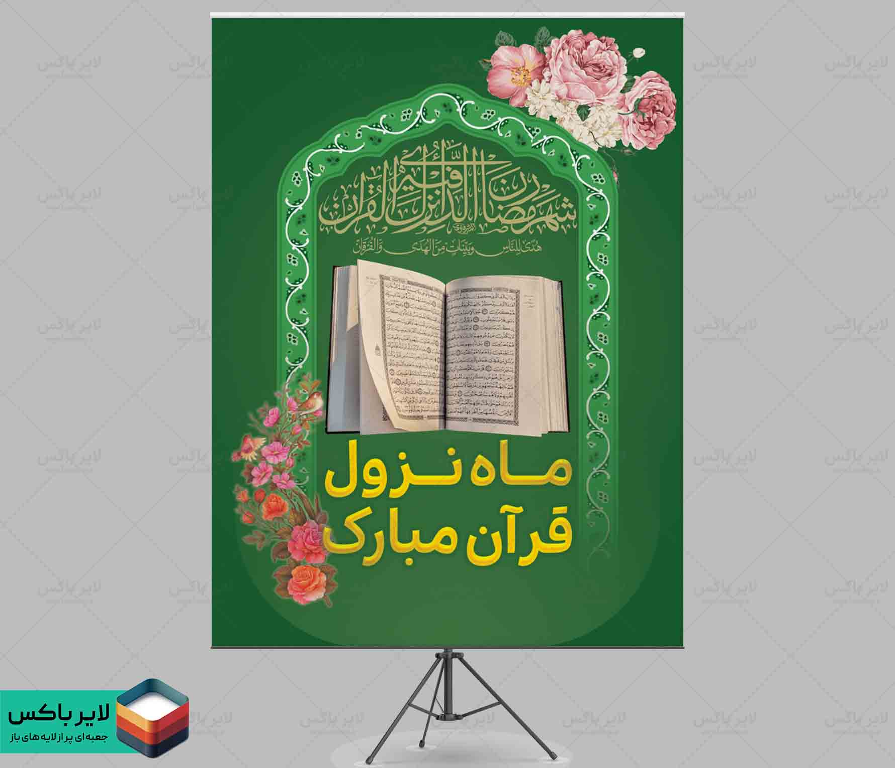 با این بنر لایه باز ماه نزول قرآن میتوانید یک بنر قرآنی، معنوی و حرفهای را بهسادگی آماده چاپ کرده و برای فضاسازی در ماه مبارک رمضان مورد استفاده قرار دهید