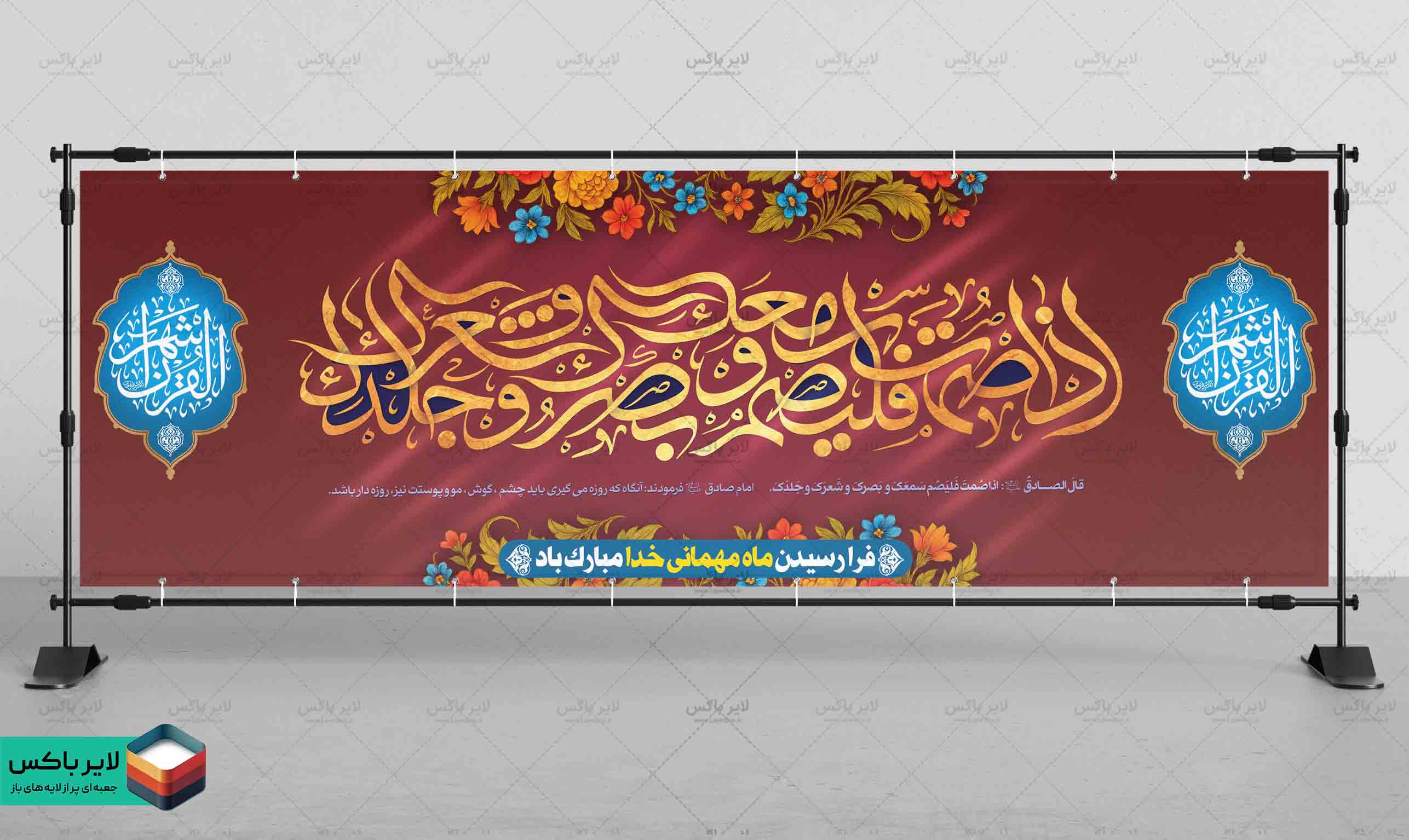 بنر لایه باز ۳×۱ متر ماه رمضان با طراحی تایپوگرافی آیه قرآنی