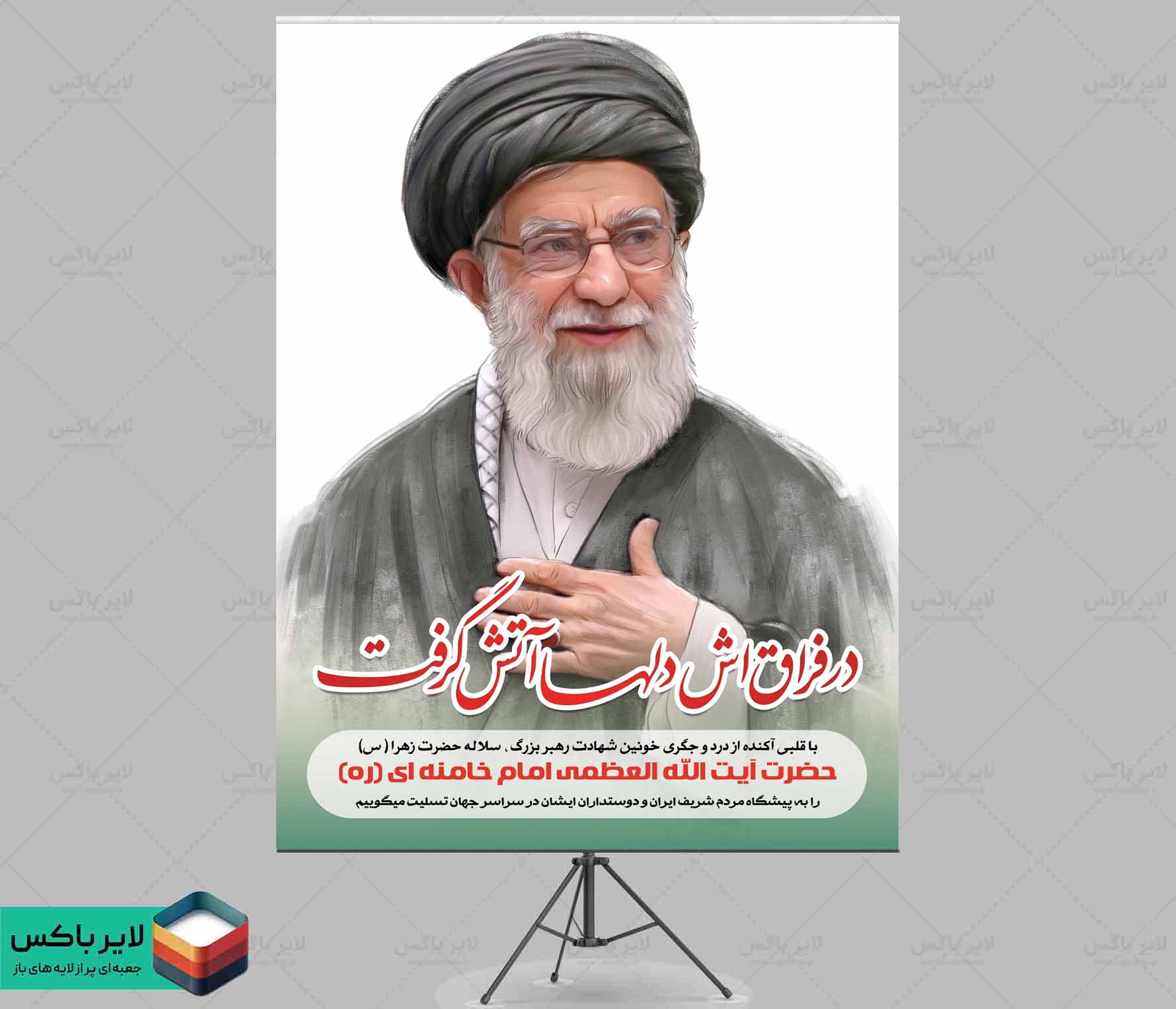 طرح لایه باز بنر شهادت آیت الله خامنه ای با فرمت psd و قابل ویرایش در نرم افزار فتوشاپ به صورت لایه باز توسط تیم طراحان طرح دات آی آر طراحی شده است. در طرح لایه باز حمله تروریستی به آیت الله خامنه ای از تصاویر و المان های با کیفیت و متناسب با استاندارد چاپ استفاده گردیده است. طرح پوستر ترور آیت الله خامنه ای لایه باز شامل عکس شهید آیت الله خامنه ای می باشد که المان های استفاده شده در طرح بنر شهید آیت الله خامنه ای قابلیت ویرایش، جابه جایی و تغییر سایز را دارا بوده و شما می توانید متناسب با سلیقه خودتان طرح شهادت رهبری را ویرایش نمایید.