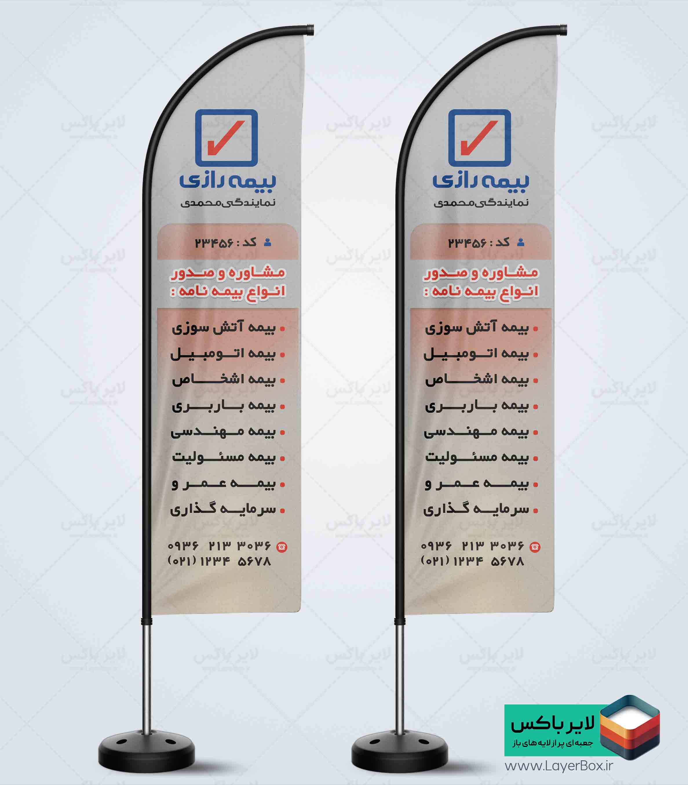فایل لایه باز پرچم بادبانی بیمه رازی