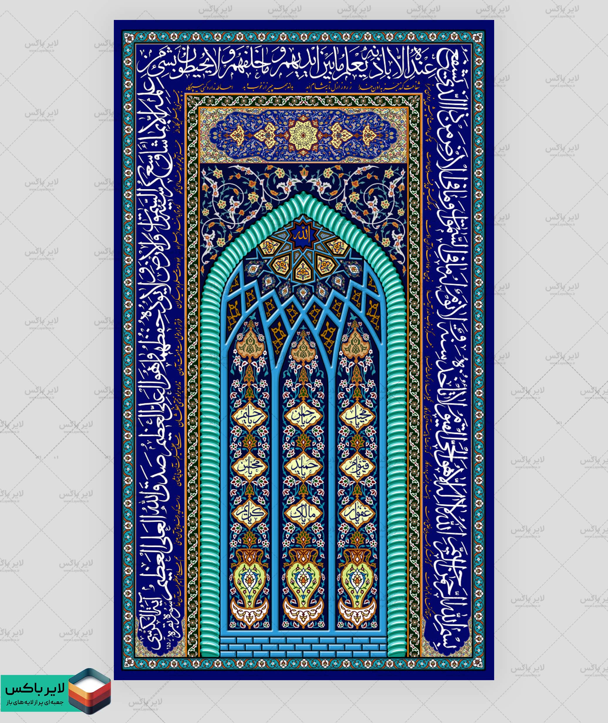 دانلود طرح لایه باز محراب مسجد با نقوش اسلامی و کاشیکاری سنتی