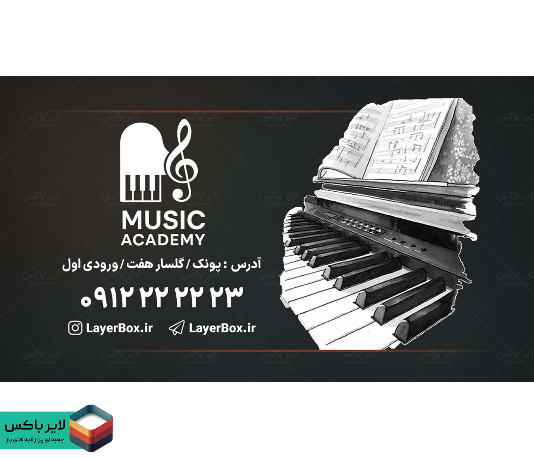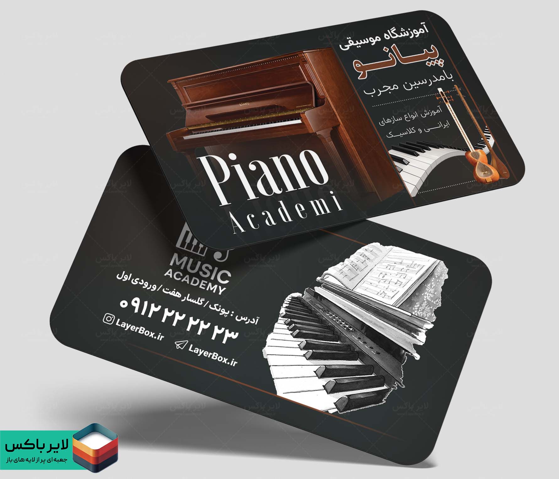 کارت ویزیت لایه باز آموزشگاه موسیقی پیانو – طراحی حرفهای و مینیمال
