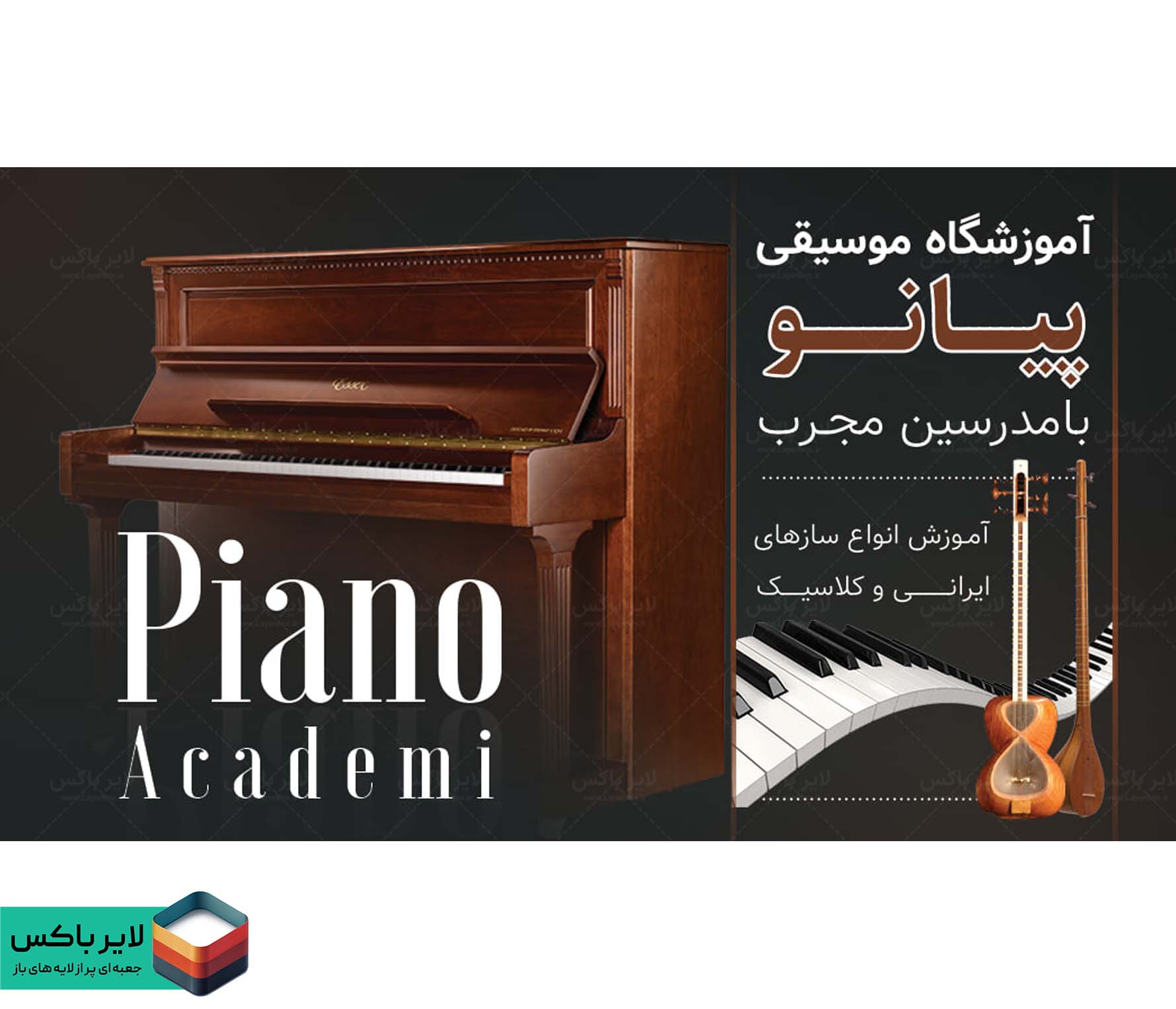 استفاده از المانهای موسیقی و طرح کلیدهای پیانو برای جذابیت بیشتر