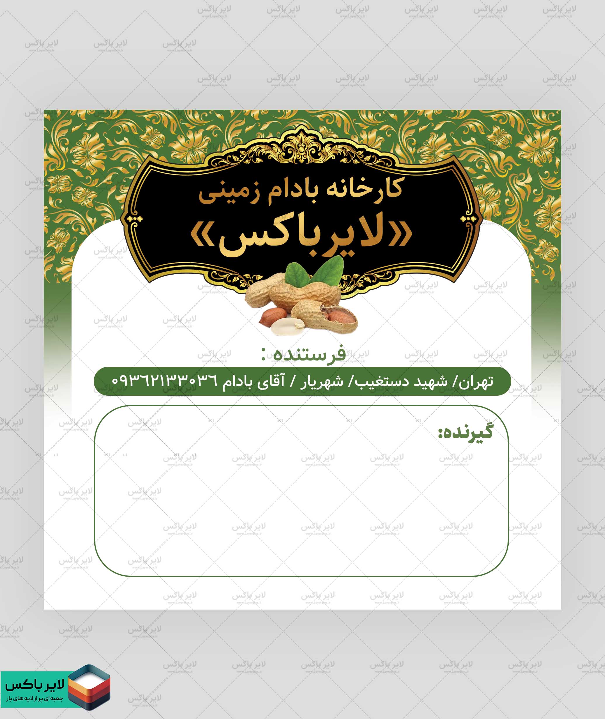 لیبل لایه باز بستهبندی بادامزمینی – طراحی حرفهای و قابل ویرایش
