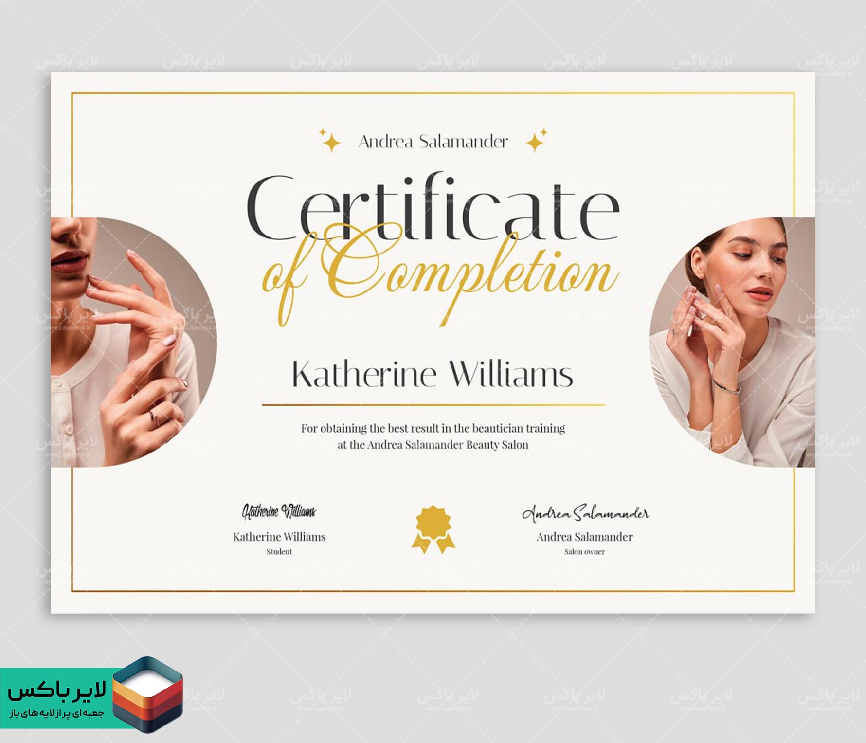 گواهینامه پایان دوره زیبایی – طرح لایه باز PSD حرفهای و قابل ویرایش