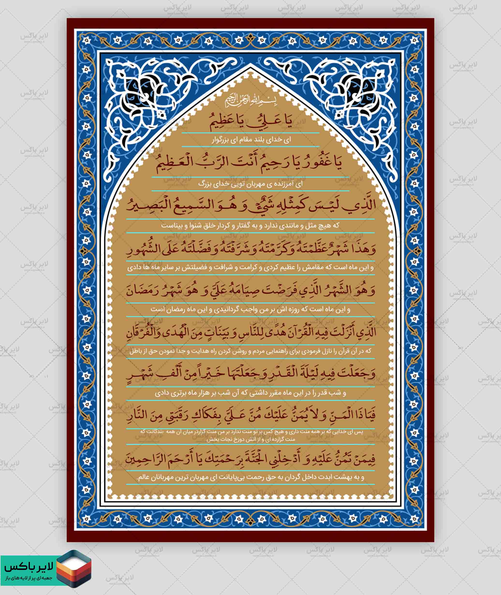 بنر لایه باز دعای ماه رمضان | طرح مذهبی PSD مخصوص چاپ