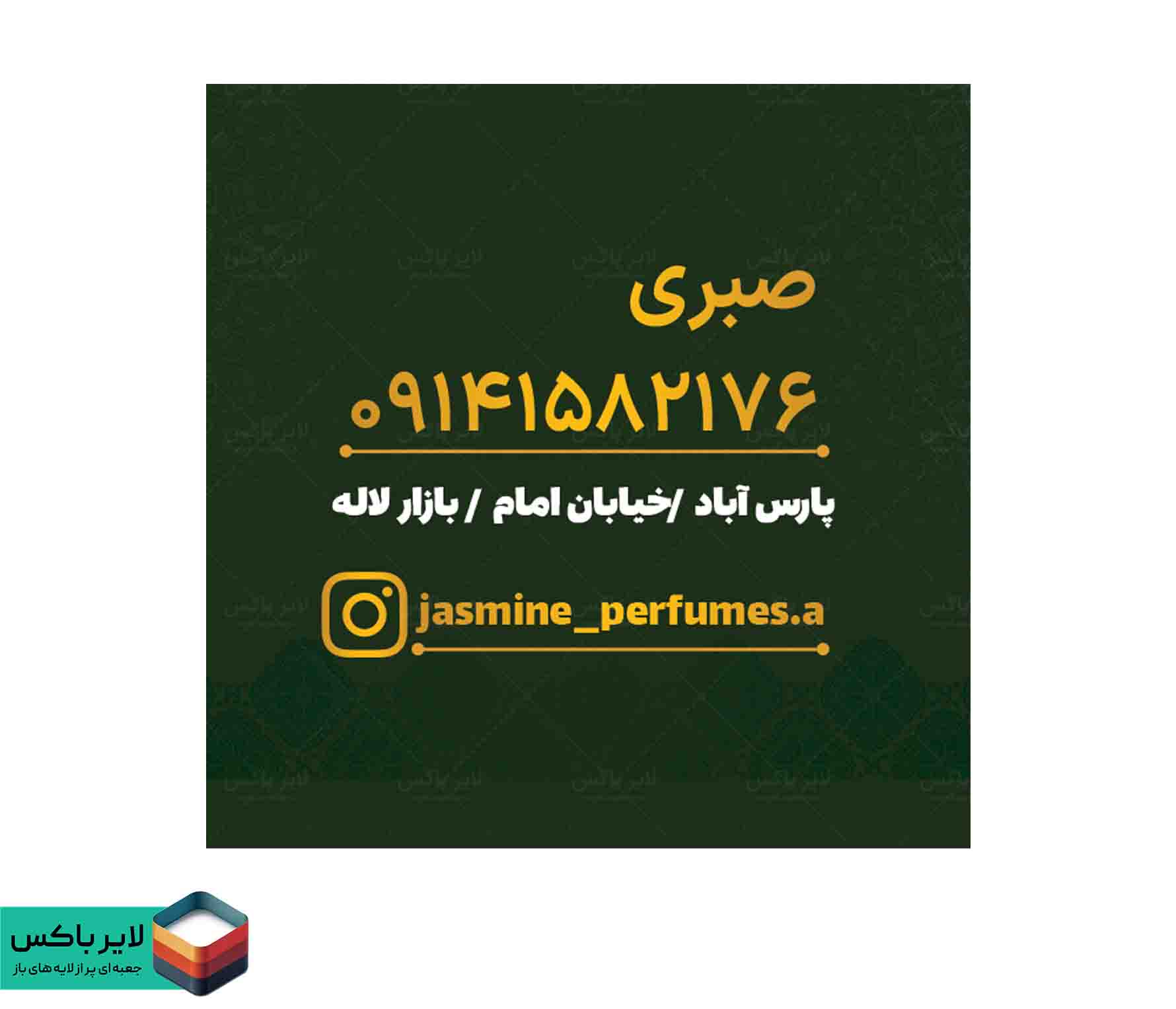 اگر به دنبال یک کارت ویزیت خاص و لاکچری برای فروشگاه عطر و ادکلن هستید، این طرح حرفهای و کاملاً لایه باز بهترین انتخاب برای شماست. طراحی این کارت ویزیت با الهام از فضای لوکس برندهای عطر و ادکلن، با ترکیب رنگهای مشکی مات، طلایی و کرم انجام شده تا حس ظرافت، اصالت و اعتماد را به مشتری القا کند.