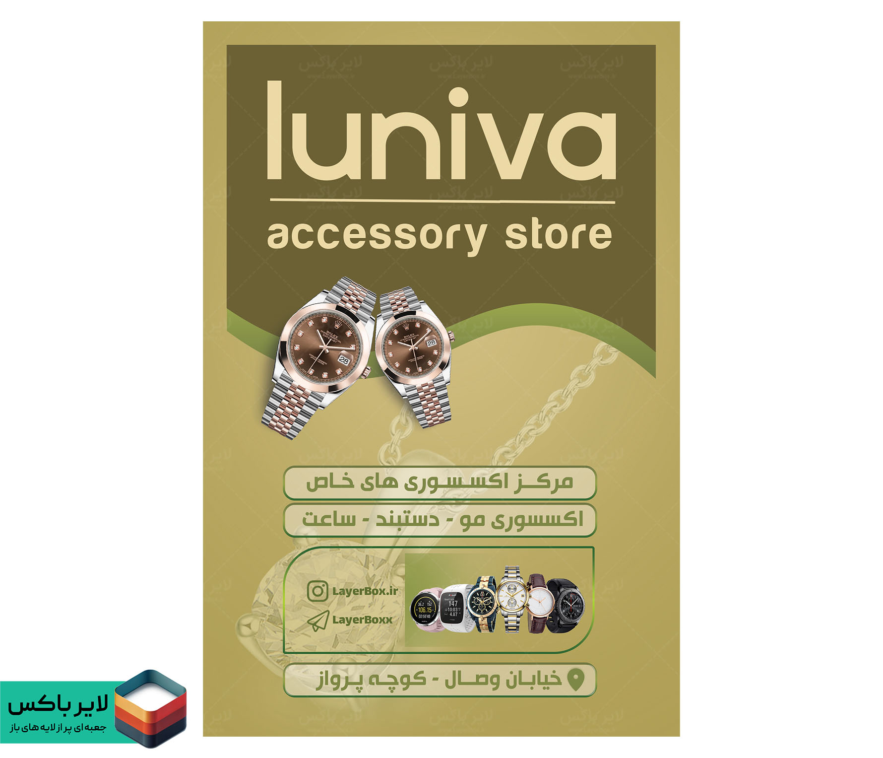 کارت ویزیت لایه باز فروشگاه اکسسوری | طرح لوکس و شیک مخصوص چاپ